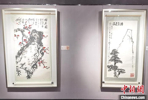 关山月《浩气长存》和《梅石图》作品在广州首次展出。中新网记者 蔡敏婕 摄