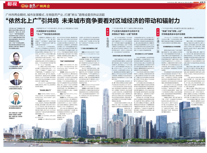 此外,今年广州市两会期间,政协委员就生物医药产业创新突破、打通“断头”路等多个热点话题提出建议。