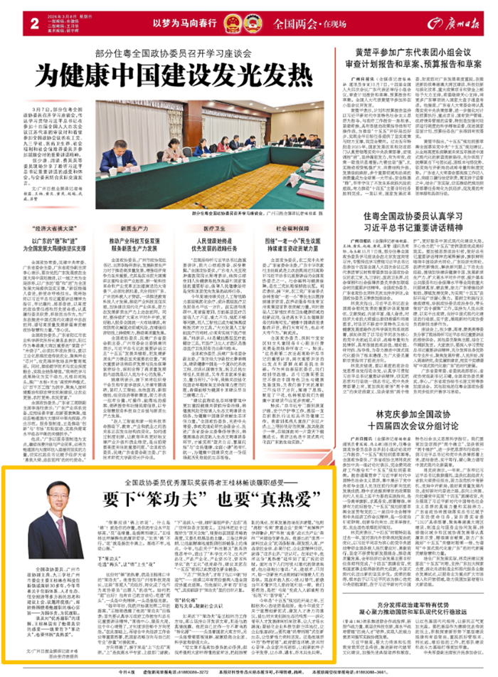 编者按:3月8日,《广州日报》刊登了《全国政协委员优秀履职奖获得者王桂林畅谈履职感受——要下“笨功夫” 也要“真热爱”》一文。现转载相关内容,以飨读者。