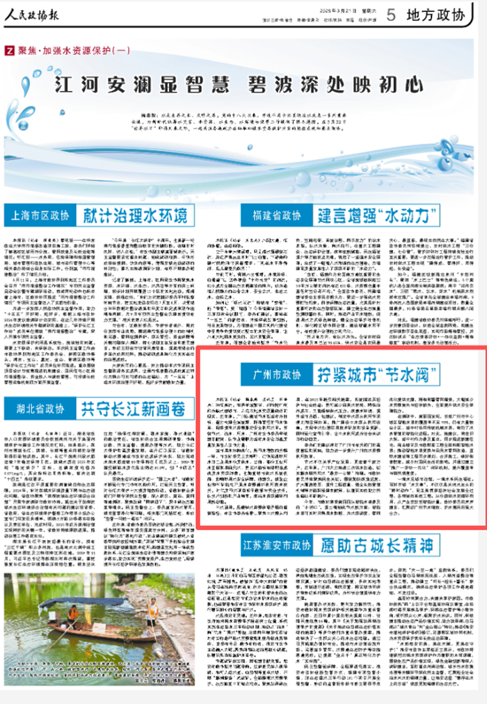 《人民政协报》:广州市政协——拧紧城市“节水阀”