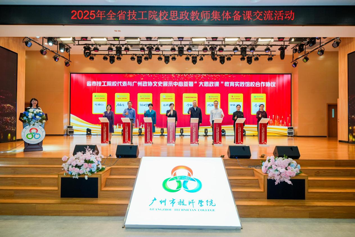 11月12日,为深入贯彻落实习近平总书记关于“大思政课”的重要指示精神,全省技工院校思政课集体备课活动在广州市技师学院举行。活动期间,广州政协文史展示中心与广东省国防科技技师学院、广州市技师学院、深圳技师学院等7所省市技工院校代表共同签署“大思政课”教育实践合作协议,标志着市政协优质文史资源正式、系统地融入思政教育体系,助力构建更富有时代气息与实践张力的育人格局。