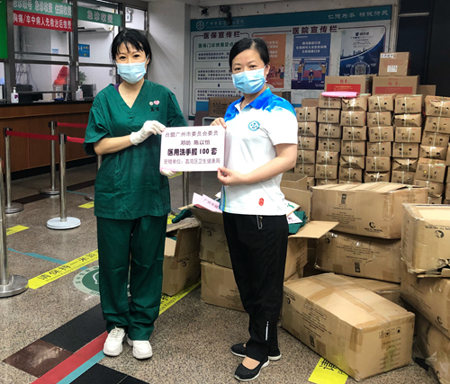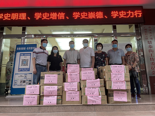 原台盟广州市委员会主委林荣茂、副主委陈月英和李亭亭等老盟员看到捐款倡议后,第一时间表示支持,并踊跃捐款,体现了市台盟老领导老同志较高的政治站位,以及对抗疫一线工作人员的关心。正在香港住院治疗的盟员樊慧瑜,得知广州疫情和捐款倡议后,第一时间捐来善款 1000元。黄延利、吴春美等老盟员也通过亲友转来爱心款,积极传播社会正能量,力所能及地为抗击疫情贡献力量。所筹得的善款用于购买了充电宝、医用手套、口罩、面罩、速干手消毒液、防感茶、快餐、饮料等一批物资,分别送至白云区景泰街、越秀区大东街和梅花村街。