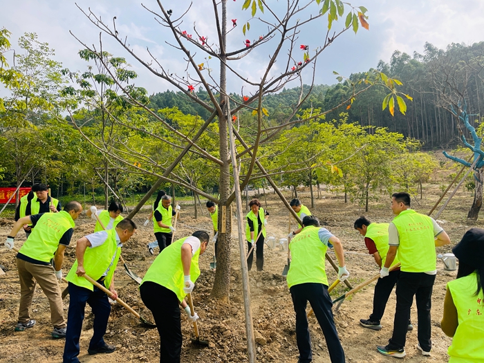 活动现场,大家分工协作、挥锹铲土、培土围堰、提水浇灌,合力种下木棉花及柿子、黄皮、人心果等,为鲤塘村增添了一片新绿,也让生态美、产业兴、百姓富的绿色发展理念在田间地头落地生根。