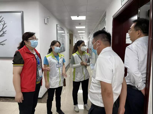 赵同顺副主席带队到鱼珠街东福新村慰问疫情防控一线工作人员,为工作人员送上消暑饮料。