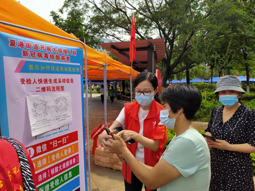 为完成应检尽检,实现第二轮全民核酸检测的全覆盖,在“双报到”海安、骏雅社区,有些党员们逐门逐户通知提醒居民做核酸检测,共上门5000多户。