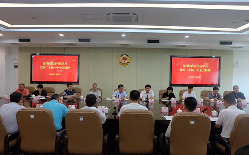 7月26日,海珠区政协召开十六届十九次常委会议,传达学习习近平总书记在党的二十届三中全会上的重要讲话和全会精神,以及省委、市委、区委常委(扩大)会议精神,研究贯彻落实意见。区政协党组书记、主席温志文主持会议并讲话。
