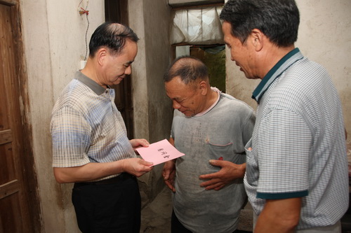 苏志佳主席来到五保户潘火荣的家中探望并送上慰问金