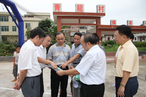 考察组接着察看了拟建的昆陂村多功能产业扶贫综合服务站选址、广东省泉州商会捐资维修昆陂村小学的情况,还察看了青龙村全民健身小广场、候车亭使用情况,以及拟建的村文化室地点。