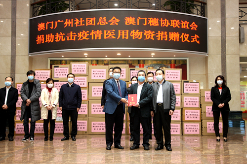 广州市政协举行澳门广州社团总会、澳门穗协联谊会捐助抗击疫情物资捐赠仪式
