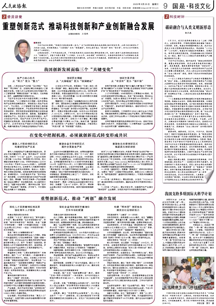 编者按:6月25日,人民政协报09版刊登了全国政协委员、市政协副主席王桂林署名文章《重塑创新范式 推动科技创新和产业创新融合发展》一文。现转载全文,以飨读者。