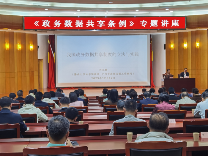 12月12日,市政协机关举办《政务数据共享条例》(以下简称《条例》)专题讲座,邀请市政协法制工作顾问、暨南大学法学院刘文静教授授课。市政协委员、机关干部职工共160余人参加了学习。